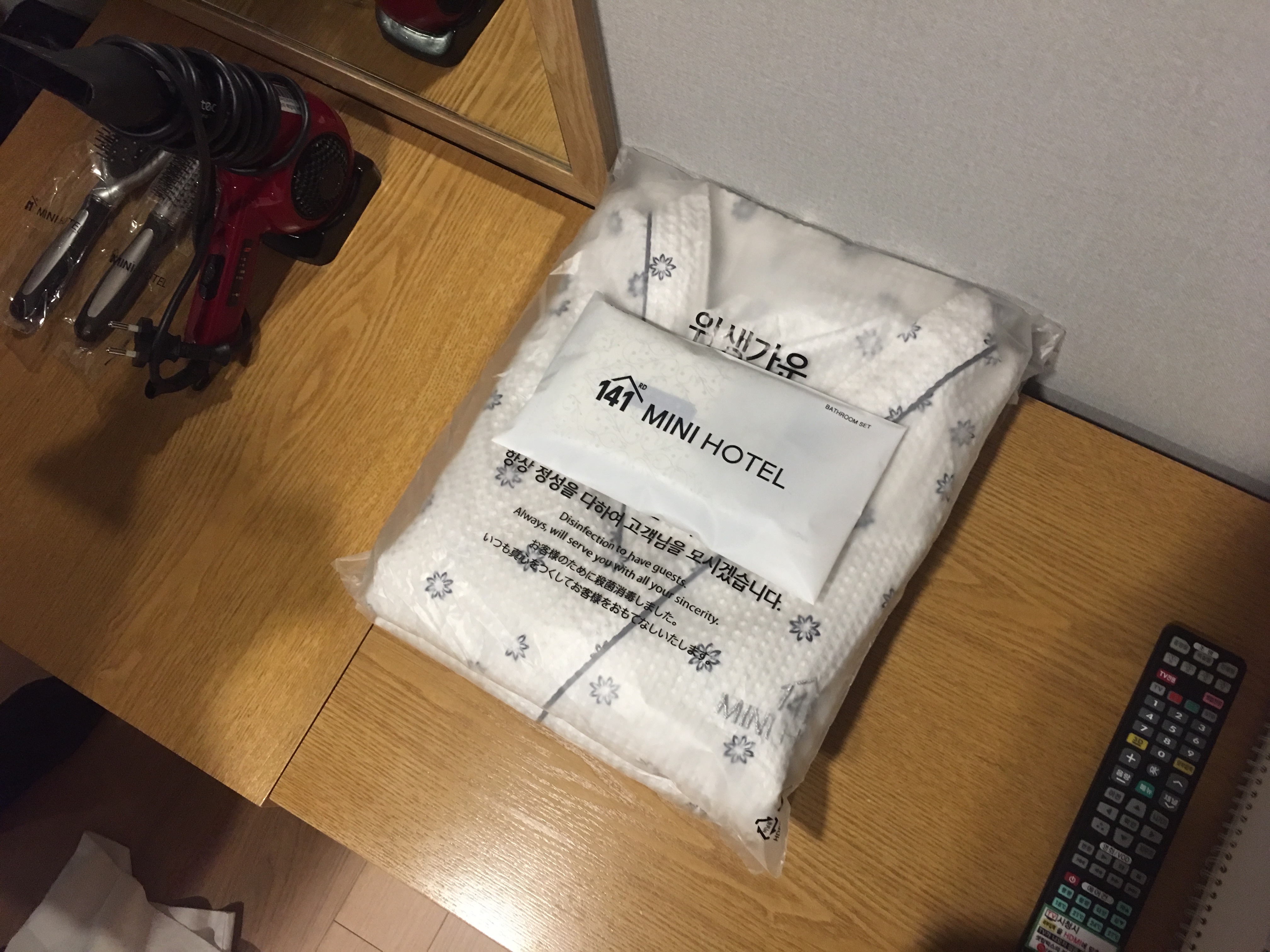 가운과 칫솔 등의 위생용품은 위와 같았다.
